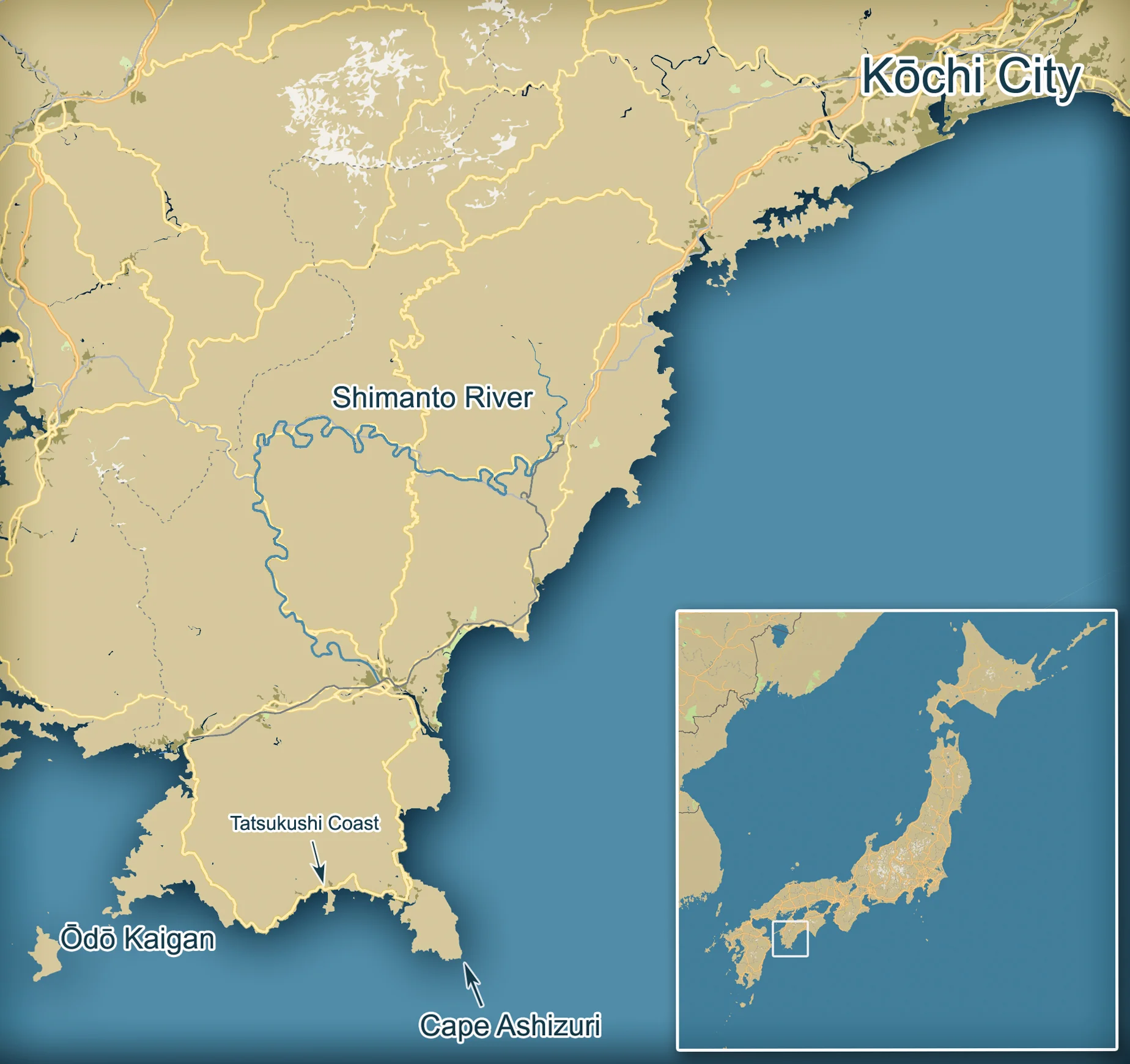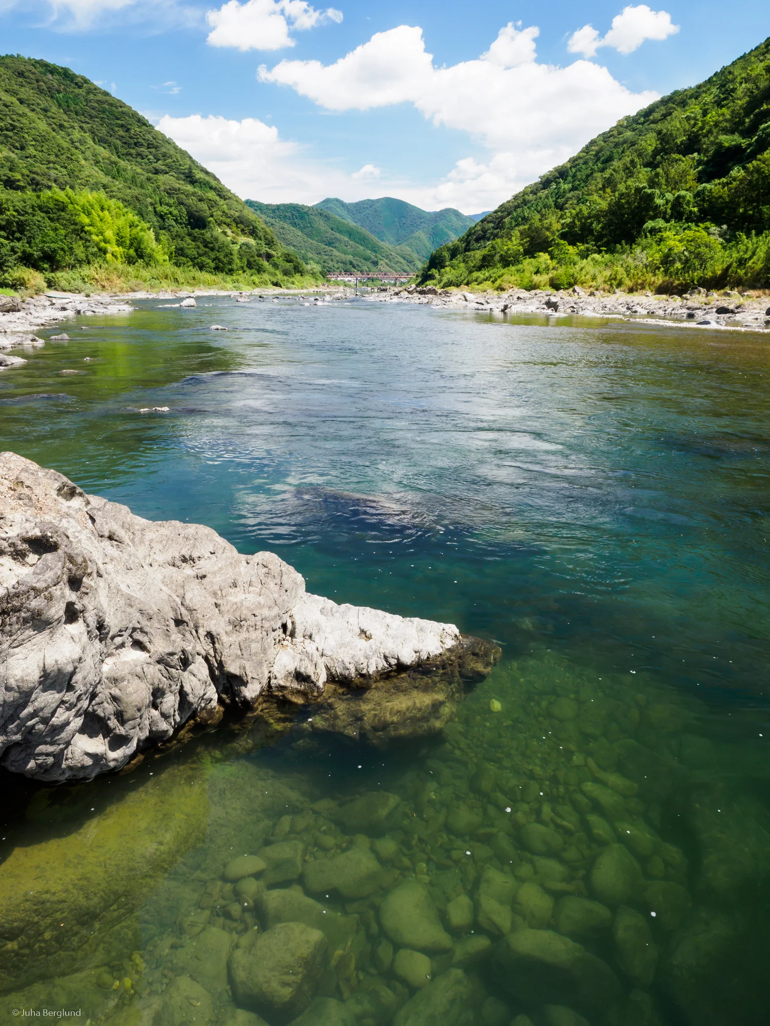 We spent three nights in the prefecture. After a day in the city we started a road trip that took us first to Shimanto River on the mountains, then down south to the beautiful Ōdō coastline on the southwestern side of Shikoku and finally to Cape Ashizuri, the southernmost tip of the island. Shimanto River is known as "the last clear stream of Japan" because it is far from cities and industry, and it doesn't have any dams. It's a great place if you enjoy fishing. Shimanto River has 47 peculiar stone bridges known as chinkabashi. These bridges are preserved as cultural heritage, they have no parapets and they are designed to be submerged when the river is flooding.