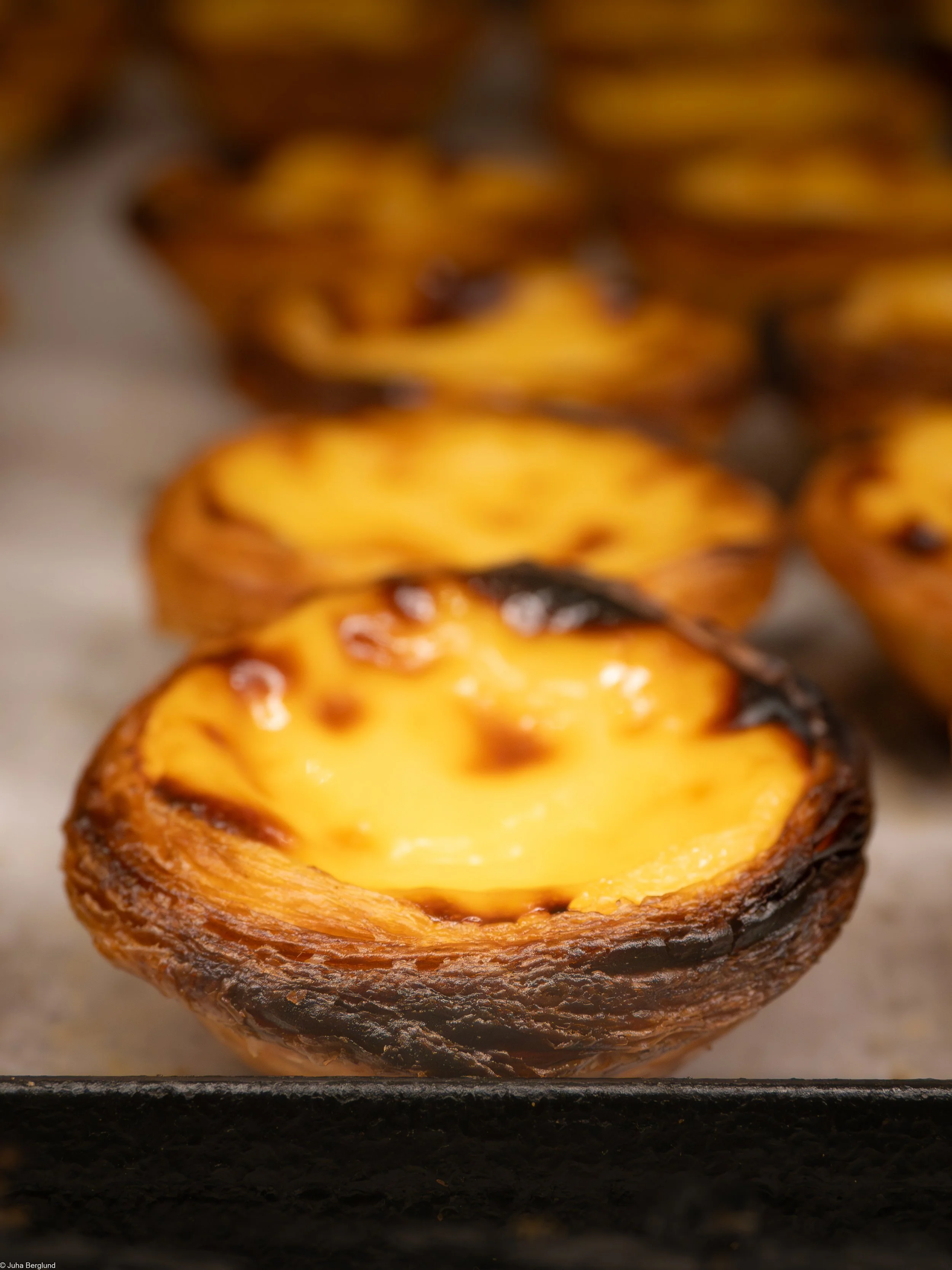 Pastel de nata are Portuguese pastries. They hit me like a drug! The conservative estimate is that I consumed at least three of these every day.